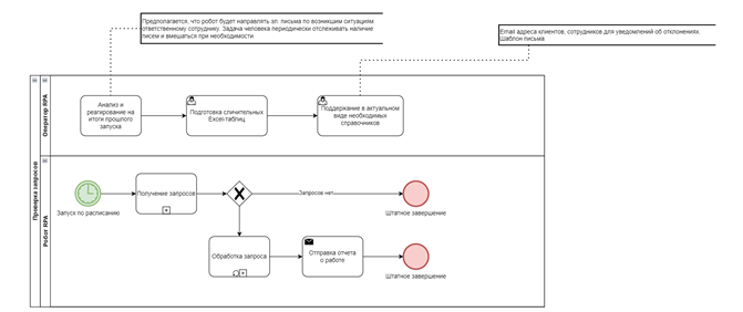 Блок-схема бизнес-процесса в варианте с роботизацией извлечения запросов контрагентов из сообщений электронной почты:
