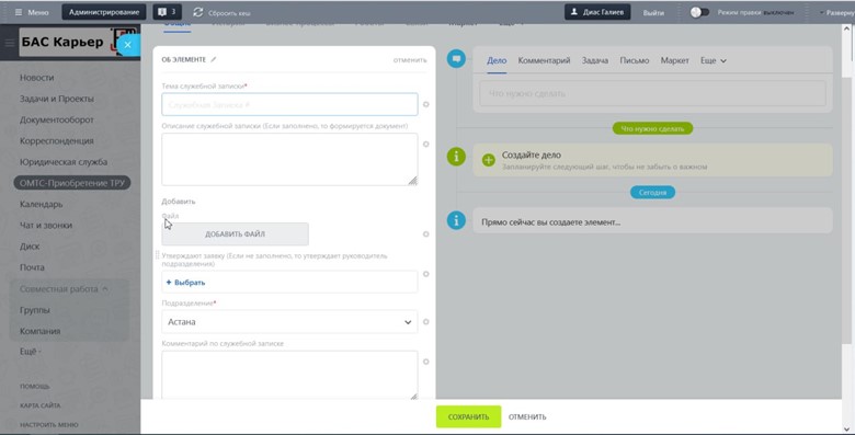 - Автоматизация документооборота для офис-менеджера, юридического отдела и отдела материально-технического снабжения.