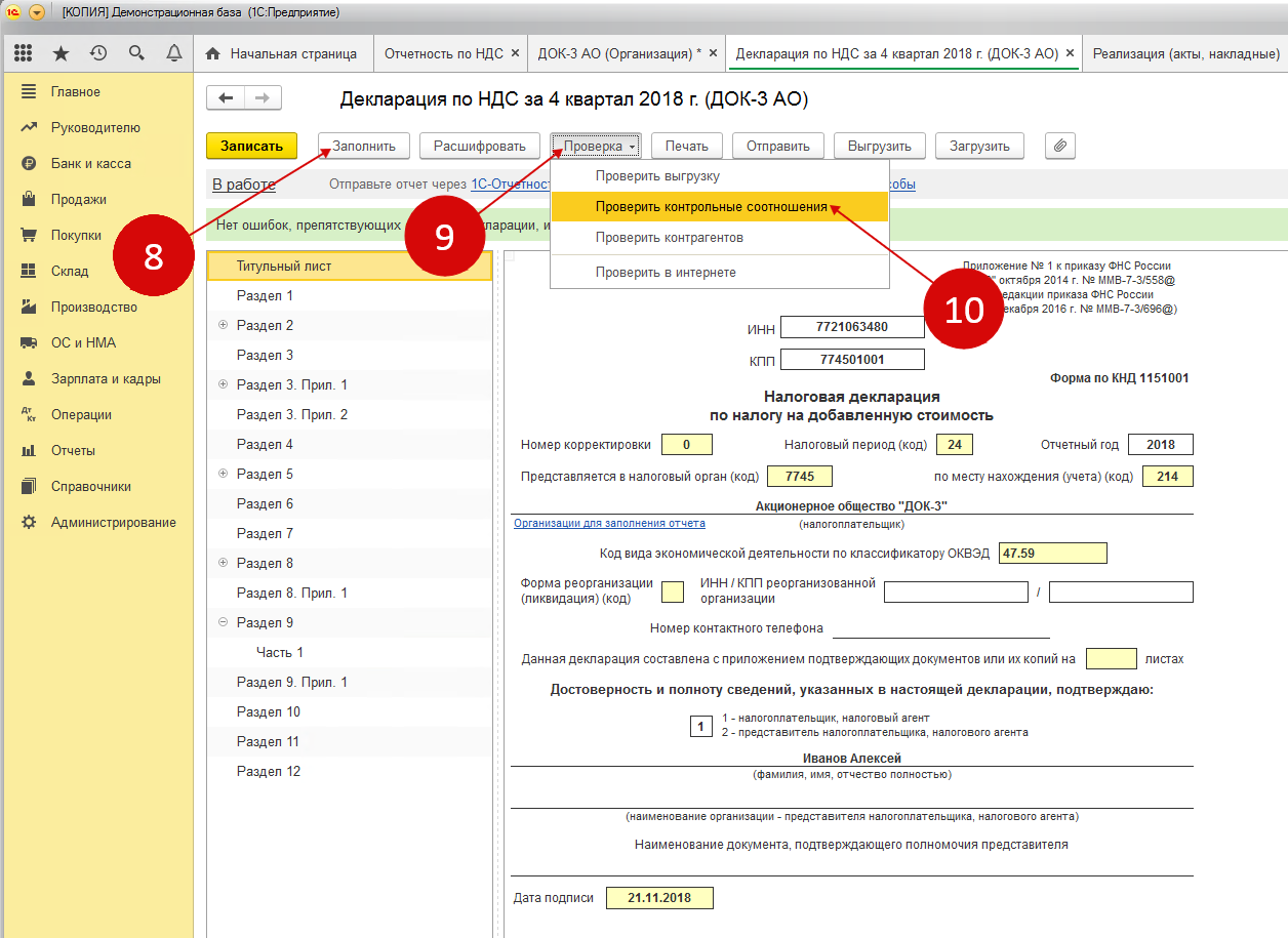 Как подготовить декларацию по НДС за 3 квартал в 1С