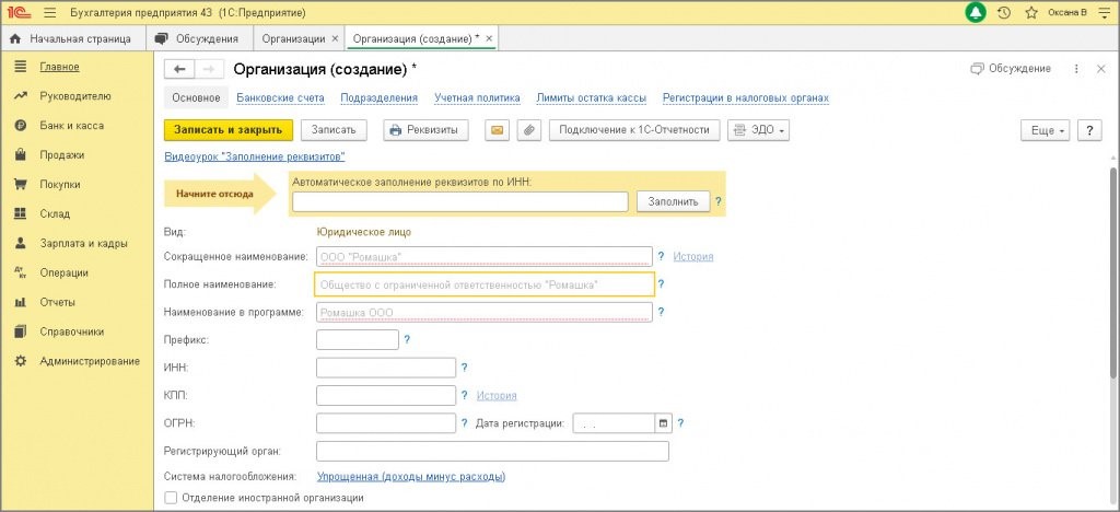 Добавление новой компании или ИП в 1С:Бухгалтерии 8 (ред. 3.0)
