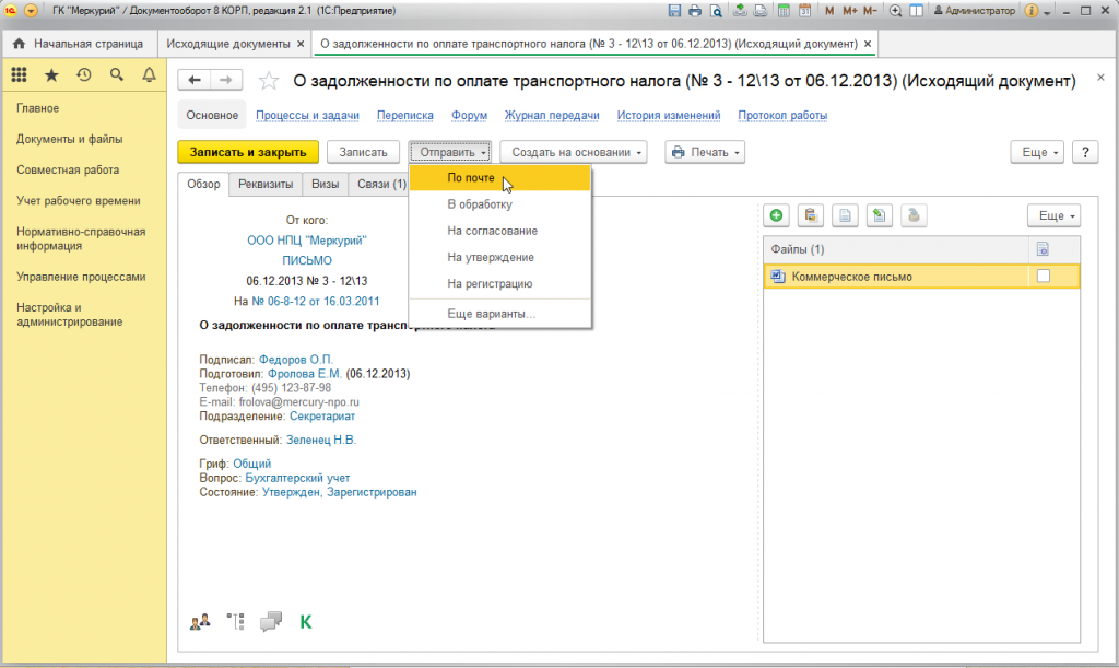 На этом можно и завершить краткий обзор возможностей использования интегрированной электронной почты в программном комплексе 1С:Документооборот.