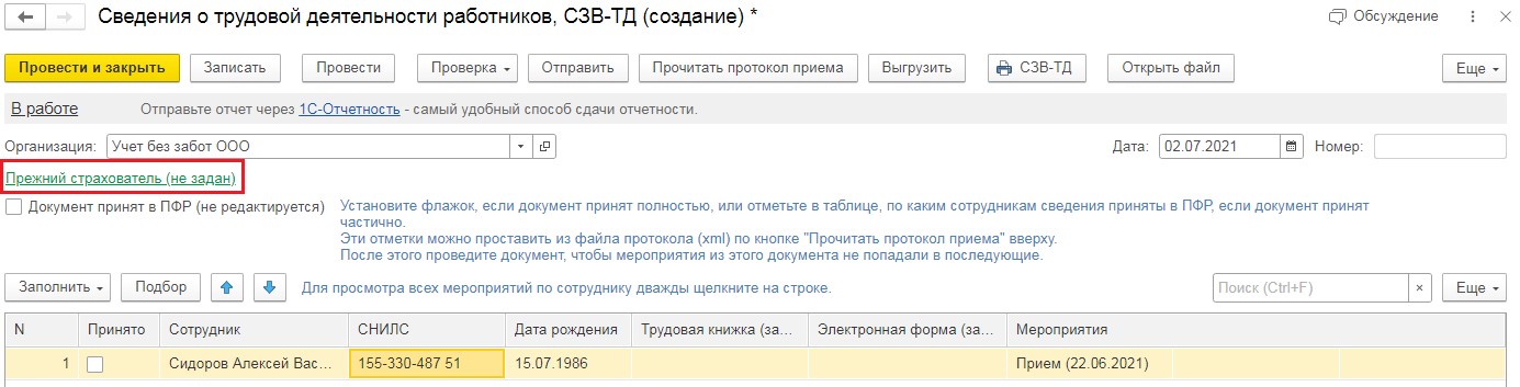 Кроме того, появилась новая строка «Прежний страхователь», которая подлежит заполнению в случае, если предприятию-правопреемнику нужно уточнить ранее представленные сведении о трудовой деятельности реорганизованной компании.