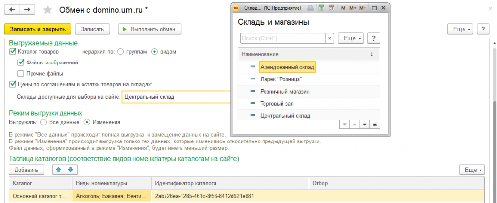 Когда внесенные изменения были указаны, необходимо выполнить обмен с сайтом. Для этого необходимо повторно нажать «Выполнить обмен», предварительно выбрав в разделе «Продажи» –> «Сайт компании» –> «Обмен с сайтом» необходимую настройку.