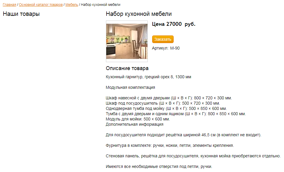 Теперь можно зайти на сайт и проверить обновленную информацию. Каталог пополнится первой номенклатурой с наличием текстового описания и картинки.