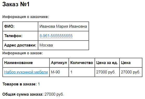 В настройках раннее можно было увидеть, что в «1С:Управлнеие торговлей 11.4» присутствует функционал для синхронизации с сайтом и загрузки заказов покупателя. Чтобы это проверить, можно самому попробовать оформить заказ. Следует нажать «Заказать» рядом с товаром, перейти в корзину и оформить заказ при помощи кнопки «Оформить заказ».