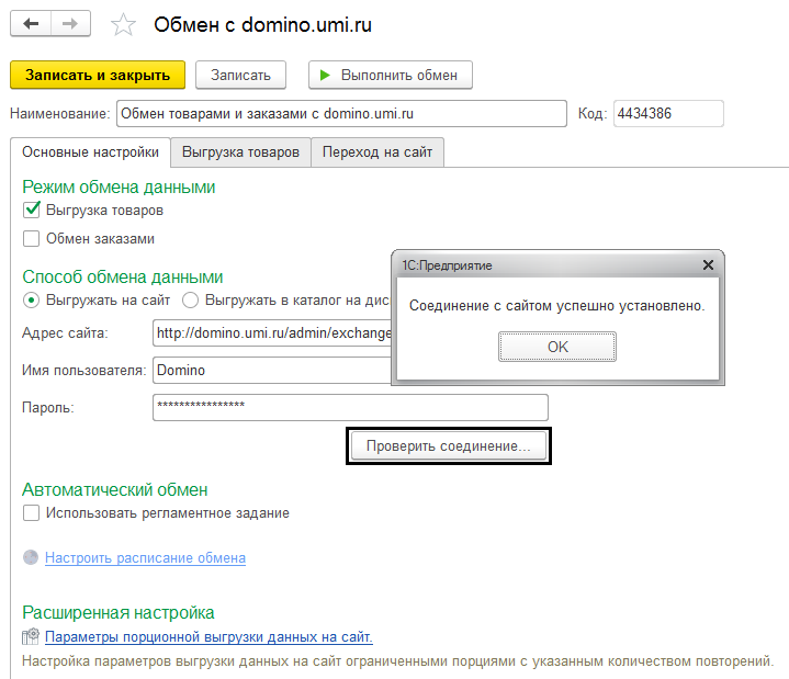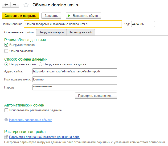 Выполнение настройки выгрузки из 1С 8.3 на сайт