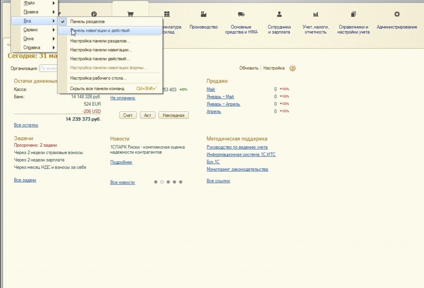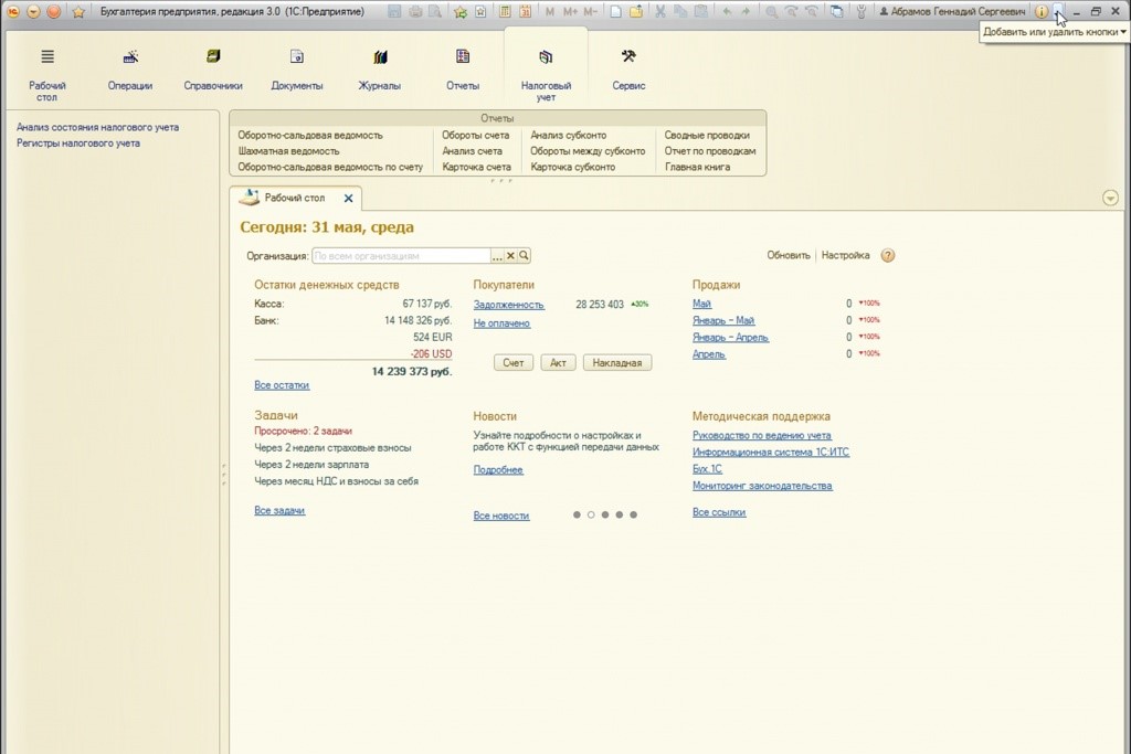 Панель действий. Здесь вы можете использовать дополнительные окна, которые расположены под основным меню. Откроется нужная полезная информация, стандартные отчеты и возможность обратиться в техподдержку.
