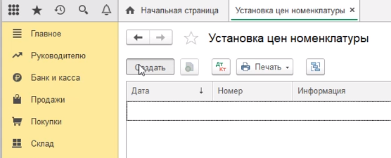 Далее нужно установить цену для нашей номенклатуры. Нажимаем кнопку добавить.