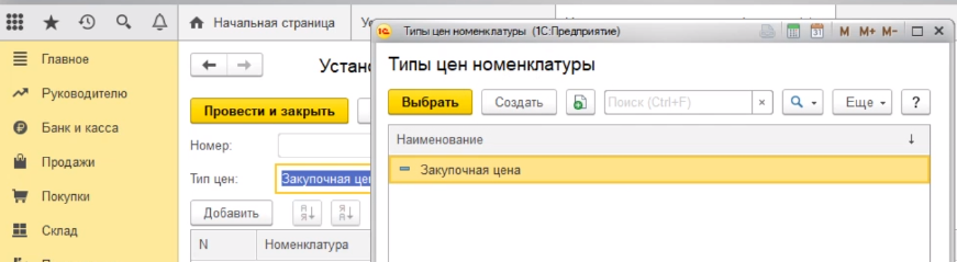 В нашем случае тип цен всего один, поэтому мы только его можем выбрать. Если бы их было несколько, то здесь были бы все наши типы цен.