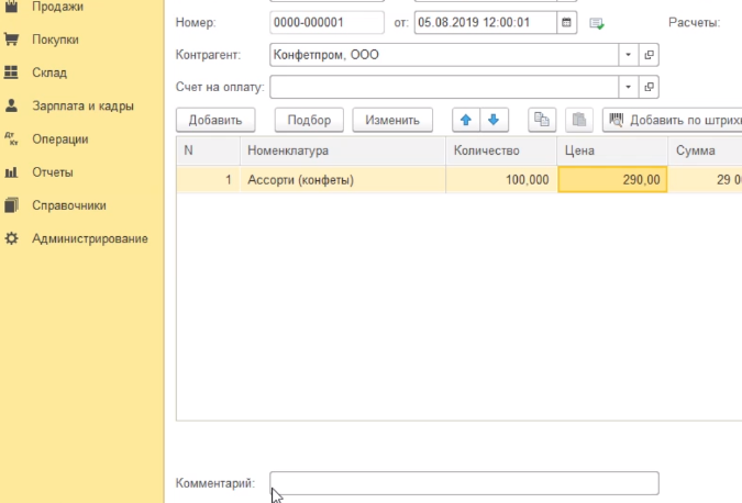 Цена автоматически подставилась программой - это та цена, которую мы в последний раз указывали в документе поступления. Если цена отличается, мы можем ее вручную отредактировать и поставить ту цену, которая реально в документе. Например, двести девяносто рублей.
