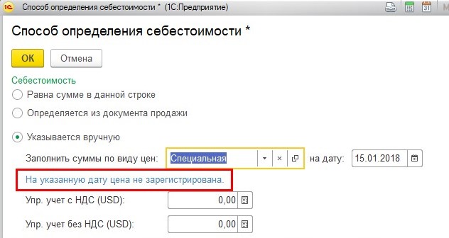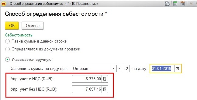 - Указывается вручную. Что даёт возможность указать цену вручную, ту цену, по которой данный продукт будет возвращаться на склад.
