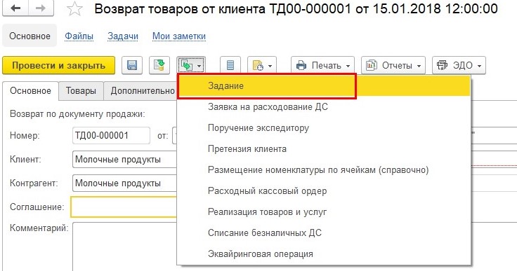 Если есть необходимость создать задачу для этого документа для любого пользователя системы, вам необходимо ввести задачу на основе возвращаемого документа: