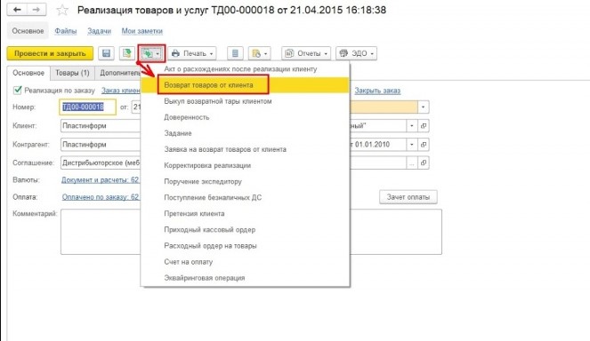 Инструкция содержит полную информацию по работе с документацией «Возврат товаров в 1С 8.3 от клиента» с возвратом от клиента (в том случае, если клиент это юр. лицо)
