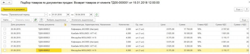 Возврат импортных товаров будет нужен в случае, когда отгрузка импортируемых товаров производится в системе с обязательным указанием номера таможенной декларации и производителя. В возвратном документе должен быть указан документ, в который должен содержать фиксацию продажи продукции. Информацию о товарах, возвращаемых покупателем, можно просмотреть после сохранения документации по возврату.