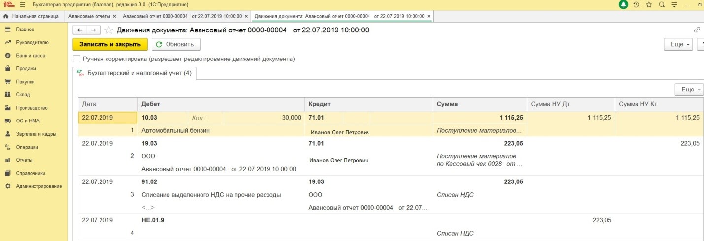 Достаточно часто подотчетные лица покупают на предприятие ТМЦ (товарно-материальные ценности), часто необходима заправка служебного транспортного средства топливом . За потраченные финансовые средства предприятия подотчетное лицо должно отчитаться и предоставить авансовый отчет, к которому должны быть подкреплены чеки ККТ. В данном документе содержится вся необходимая информация для отражения расходов и расходы достаточно просто отобразить в учете. Но случаются такие ситуации, когда НДС выделен, а счет-фактурой не подтвержден. У бухгалтеров по этому поводу очень часто возникает вопрос, можно ли НДС принять к вычету или включить его в стоимость самих ТМЦ. Ниже представлен практический пример из 1С:Бухгалтерии.