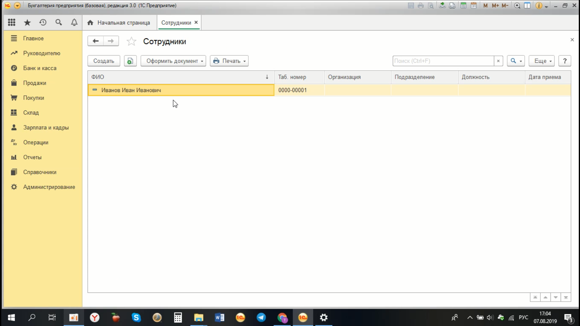 У нас соответственно появляется в справочнике сотрудника, новый сотрудник Иванов Иван Иванович.