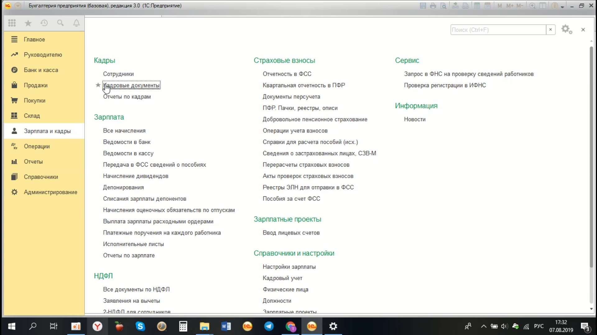 Для этого, мы должны перейти в раздел «Зарплата и кадры», «Кадровые документы».
