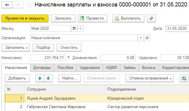 Шаг №2. Начислить зарплату за месяц