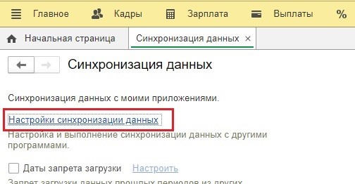 Затем нажимаем ссылку «Настройки синхронизации данных» и выбираем «Синхронизировать».