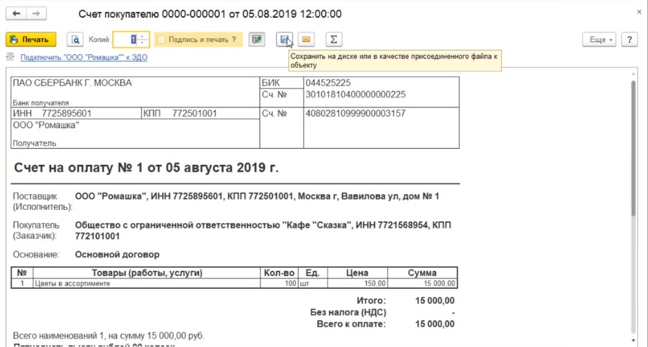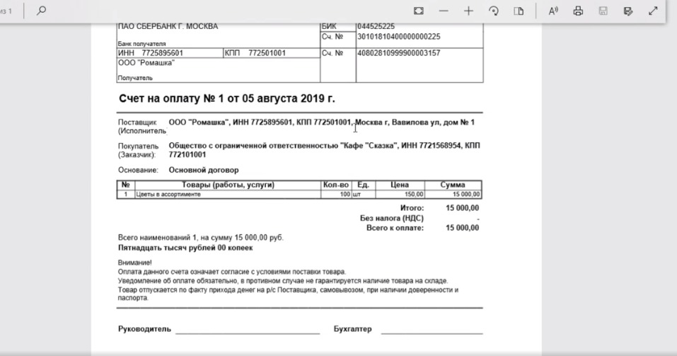 Двойным кликом открываем и видим наш сохраненный документ - счет на оплату.