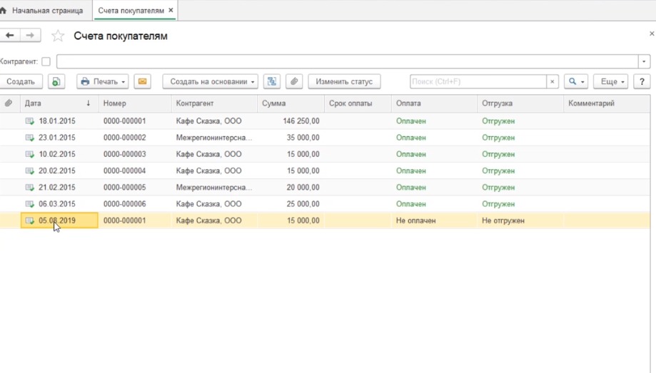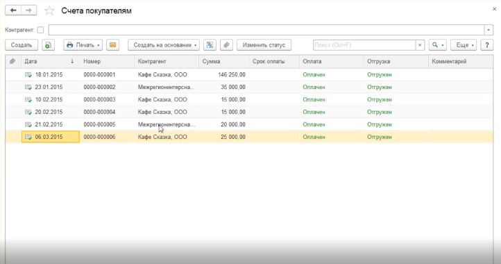 Если нам в будущем необходимо вернутся к нашему счету, чтобы внести какие-либо корректировки или исправления мы можем это сделать двойным кликом, найдя его в журнале счетов покупателя.