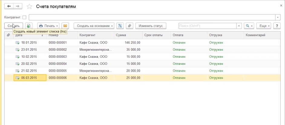 Рассмотрим, как создаются счета покупателям в программе 1С 8.3 Бухгалтерия.