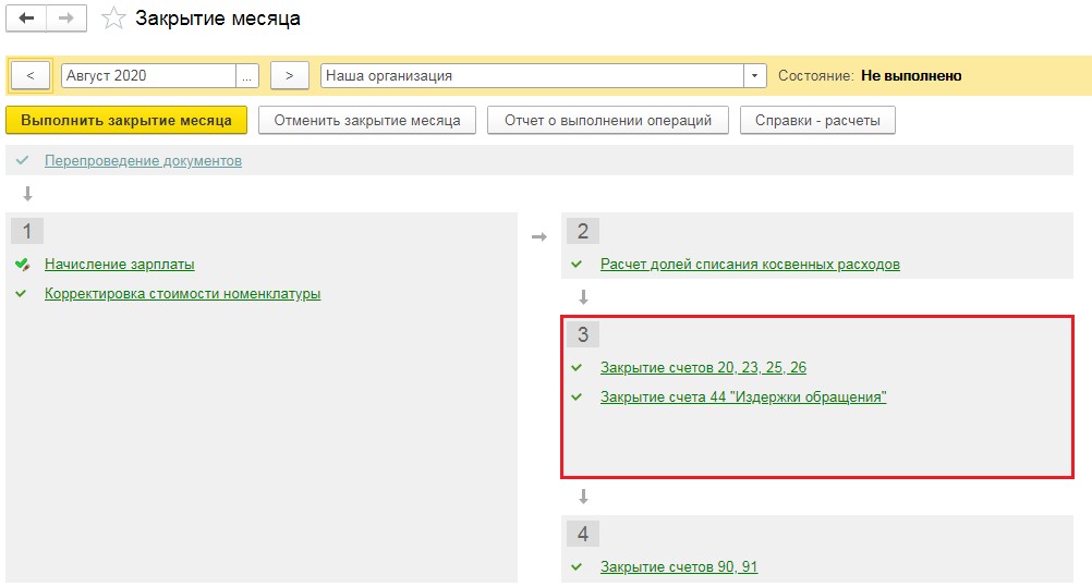 Как закрываются затратные счета (20, 25, 26, 44) в 1С