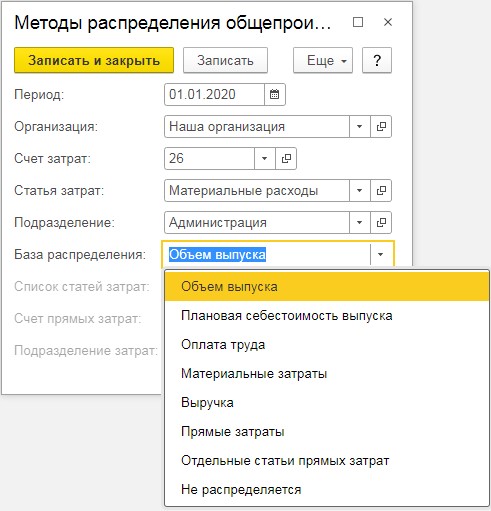 В качестве примера, материальные расходы на счете 26 могут распределяться исходя из объема выпуска, или же будут признаны прямыми затратами.