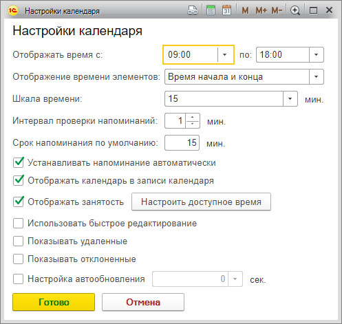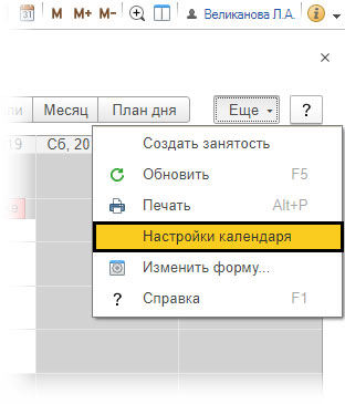 При нажатии на кнопку "Ещё" и при выборе команды "Настройки календаря", появятся дополнительные возможности его редактирования.