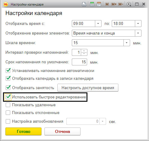 При установке галочки на параметре "Быстрое редактирование" пользователь сможет вносить изменения при клике на календарь. Нажав на ячейку, он увидит строку, в которую можно вносить информацию о мероприятиях.