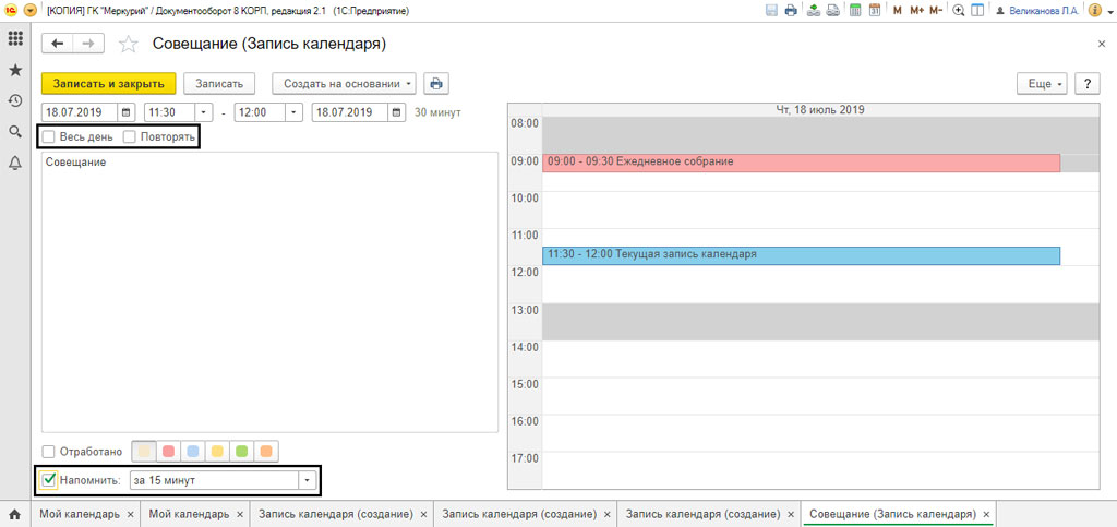 К примеру, при указании участников мероприятия, информация появится в их личных календарях.