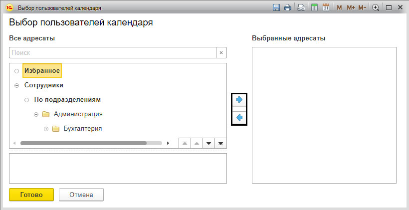 В появившемся окне при выборе пользователя можно увидеть его собственный календарь.