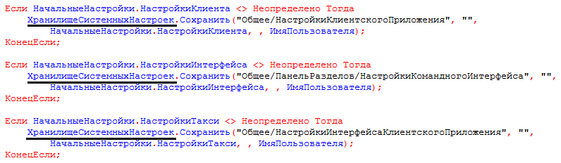 Благодаря способу, который мы описали выше, вы можете сохранять данные не в таблицах системы, а выбирать отдельные объекты конфигурации. Для того, чтобы реализовать такой механизм, программист использует специальные описанные алгоритмы, которые и отвечают за сохранение/восстановление настроек.