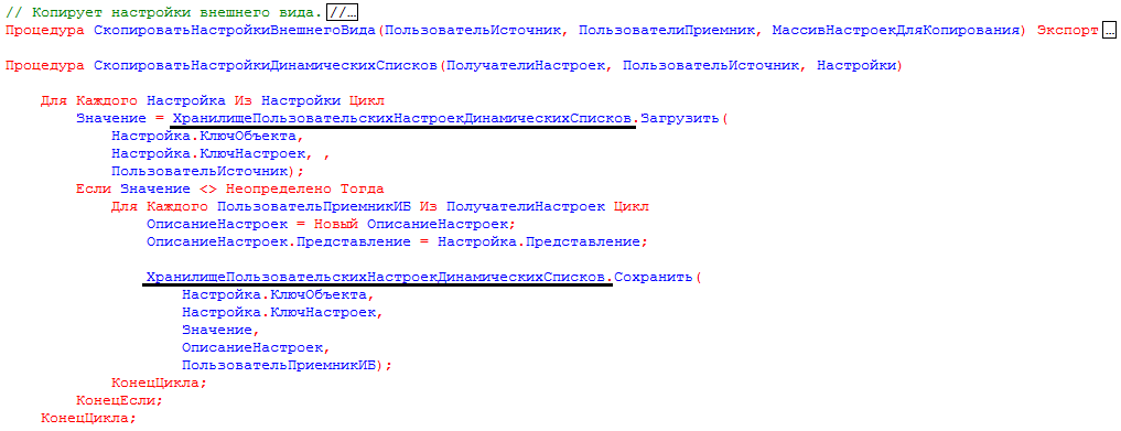 - код для хранилища пользовательских настроек динамических списков: