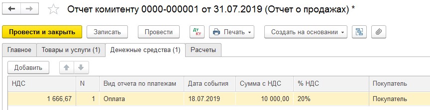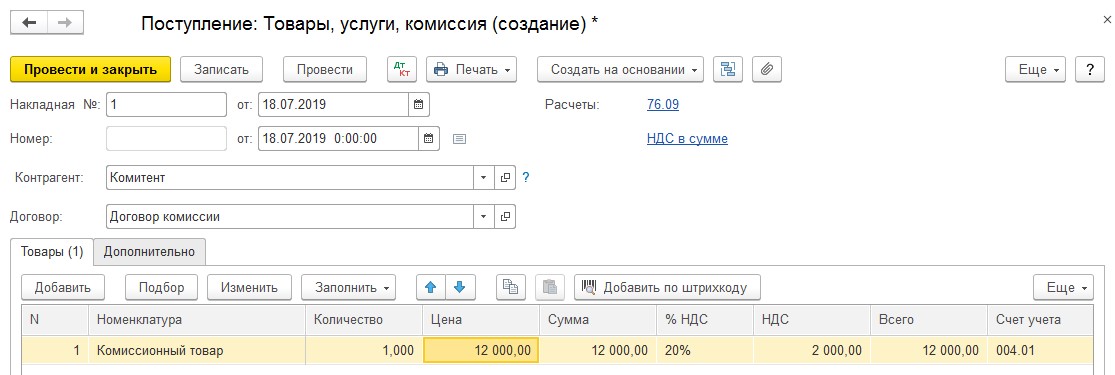 2. С использованием механизма «Ввода на основании» из поступления комиссионной продукции.