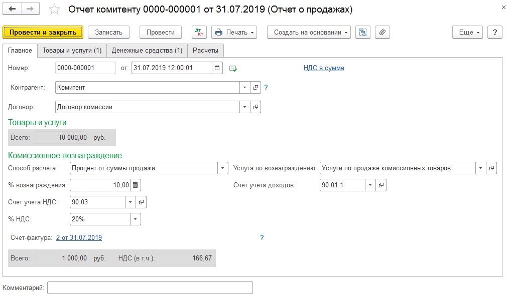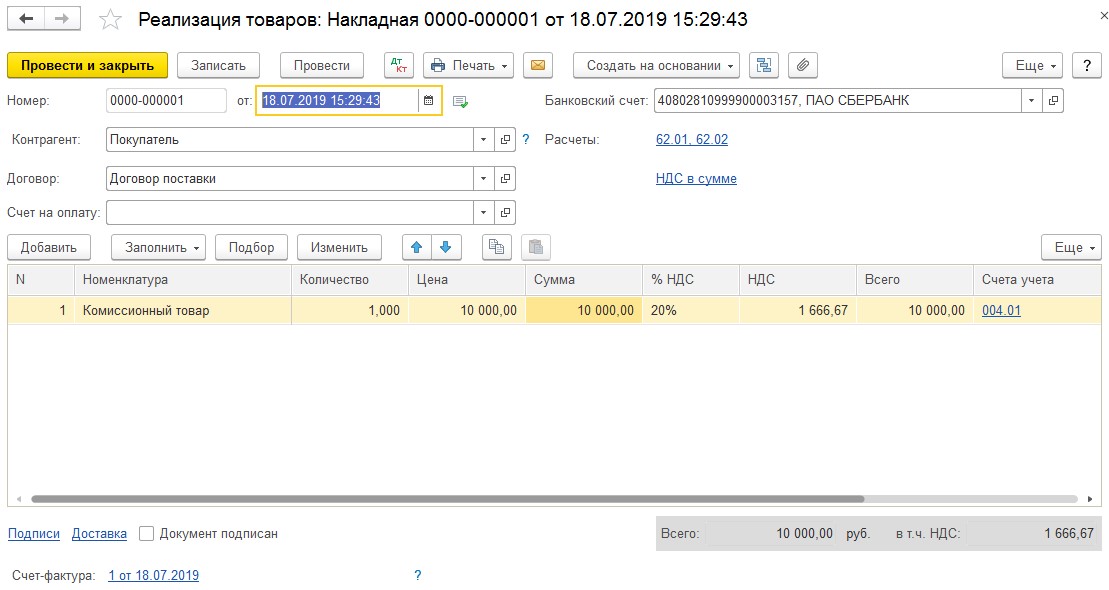 Как учитывается комиссионная торговля в 1С