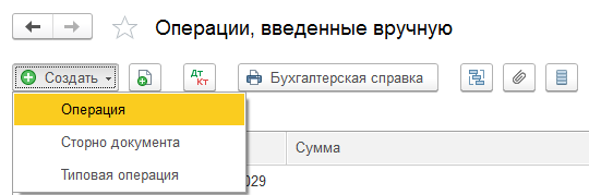 Посмотрим журнал «Операции, введенные вручную» из вкладки «Операции».