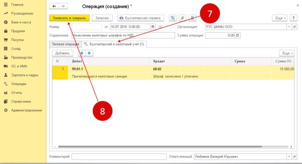 Последним шагом становится подтверждение процедуры. Пользователь кликает на надпись «Записать». В 1С 8.3 можно создать неограниченное количество проводов по пеням и штрафам.