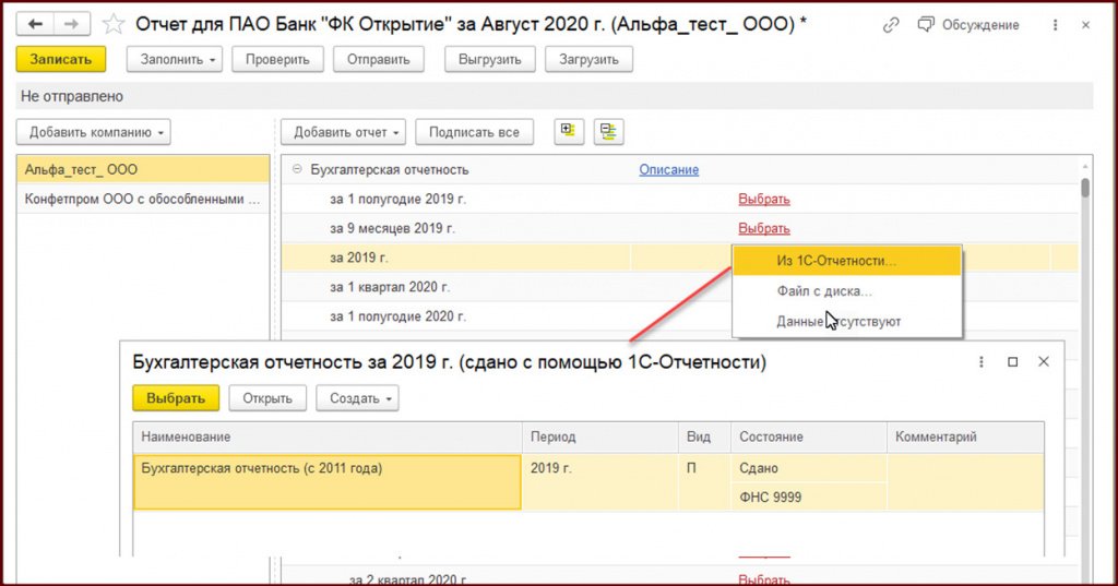 Если учет группы компаний осуществляется в отдельных базах, пакеты отчетности могут быть подготовлены и подписаны каждый в своей базе. Отчеты выгружают в zip-архивы и загружают в общий пакет в базе основной компании группы.