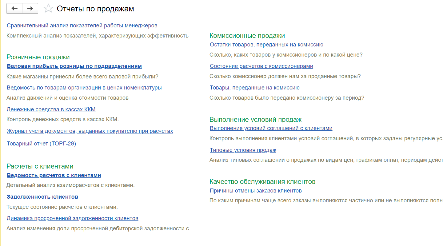 Важно: Конфигурация 1С УТ позволяет также отразить в отчете менеджера, ответственного за сделку или вывести информацию о проценте вознаграждения.