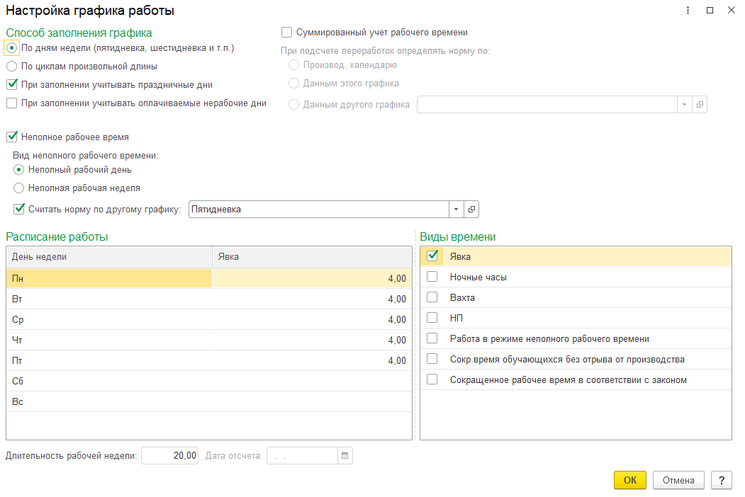 Настройка неполного рабочего времени в 1С:ЗУП 8