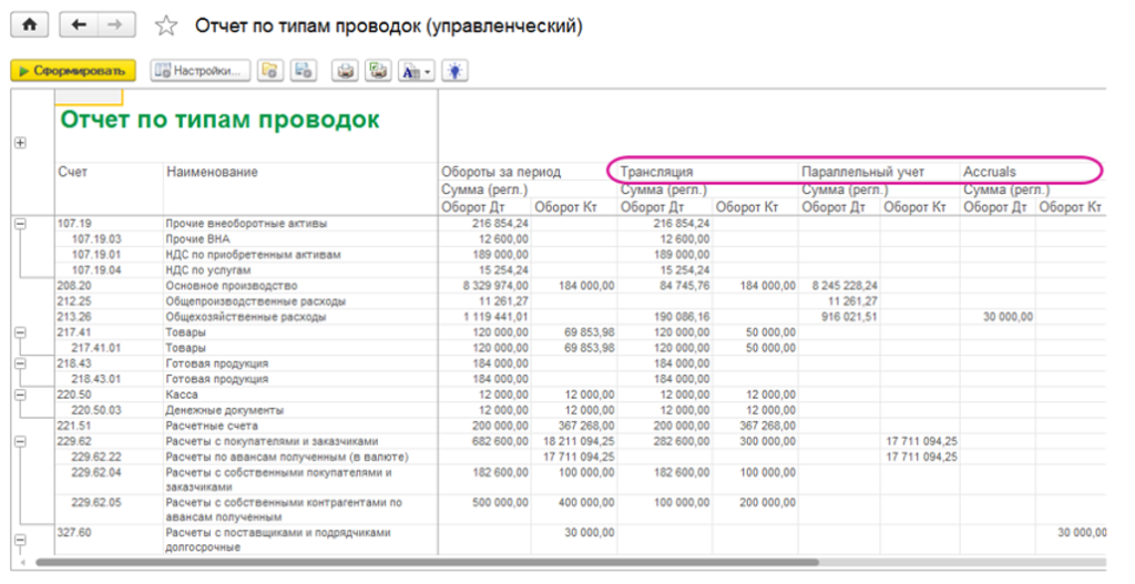 Это позволяет точечно воспроизводить требования стандартов МСФО по чувствительным участкам, при этом оставаясь в одном решении и не теряя связность данных и целостность учета.