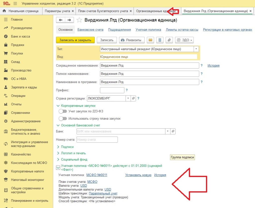 В системе используется единый набор справочников и нормативно-справочной информации. Это означает, что контрагенты, номенклатура, договоры и другие элементы ведутся централизованно и применяются сразу в нескольких учетных моделях. При внедрении важно учитывать, что при переходе к МСФО может потребоваться уточнение или корректировка аналитики, поскольку те же справочные данные используются и для формирования отчетности по международным стандартам. Дополнительные параметры учета по МСФО могут задаваться непосредственно в карточках справочников, что позволяет учитывать специфику отражения объектов учета.