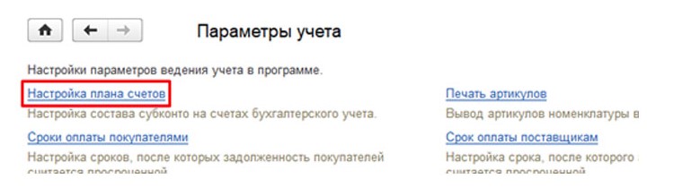 Именно в настройках плана счетов можно отключить или включить опцию учета по партиям. Изменение доступно не только из плана счетов, но также из параметров программы.