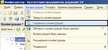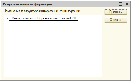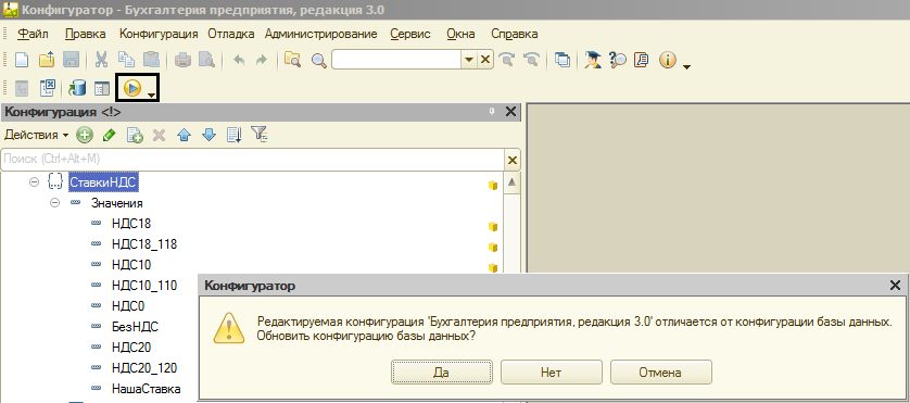 Затем требуется обновить конфигурацию базы данных. Можно при открытии программы через отладчик, тогда она напомнит о изменении сведений.