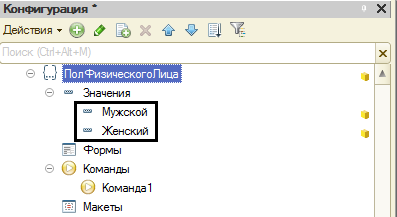 В том случае, если мы посмотрим на перечисление в Конфигураторе, то увидим там эти значения.