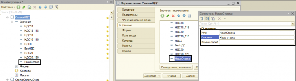 Далее необходимо задать значение НашаСтавка. Мы видим, что оно появилось в списке. Таким образом можно ввести новые ставки НДС.