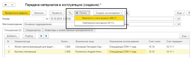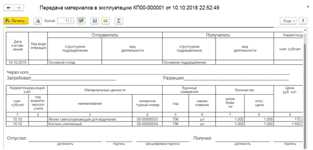 Передача материалов в эксплуатацию в 1С 8.3 - пошаговая инструкция