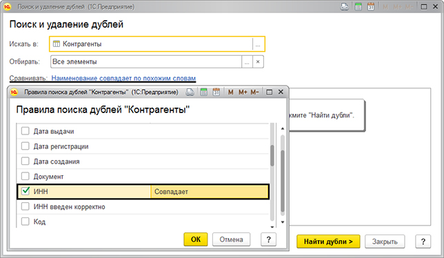 Поиск и удаление дублей в 1С 8.3