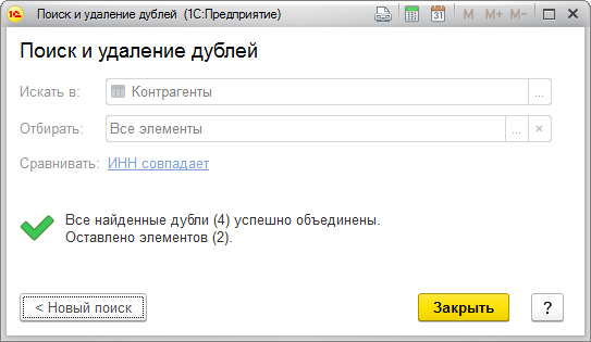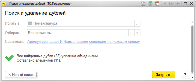 Теперь вы можете закрыть обработку или начать поиск дублирующих документов в другом месте. Для этого нужно нажать кнопку «Новый поиск».